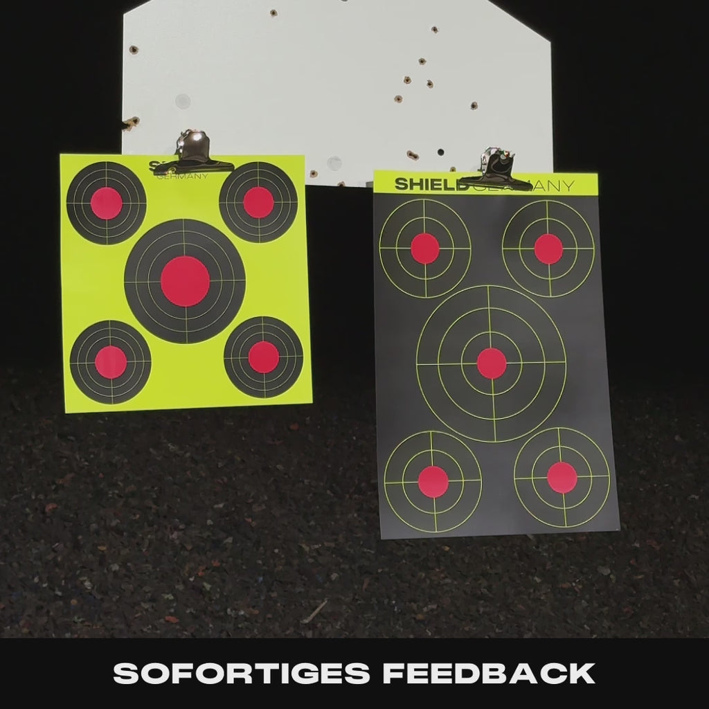 Die SHIELD Germany Splatter-Targets bieten dir maximale Präzision und perfekte Sichtbarkeit bei jedem Schuss. Dank des innovativen Splitter-Effekts wird jeder Treffer sofort sichtbar – auch auf größere Entfernungen und unter schwierigen Lichtbedingungen. So kannst du deine Schussleistung direkt auswerten und sofort korrigieren, ohne die Zielscheibe ständig wechseln oder mit dem Fernglas kontrollieren zu müssen.