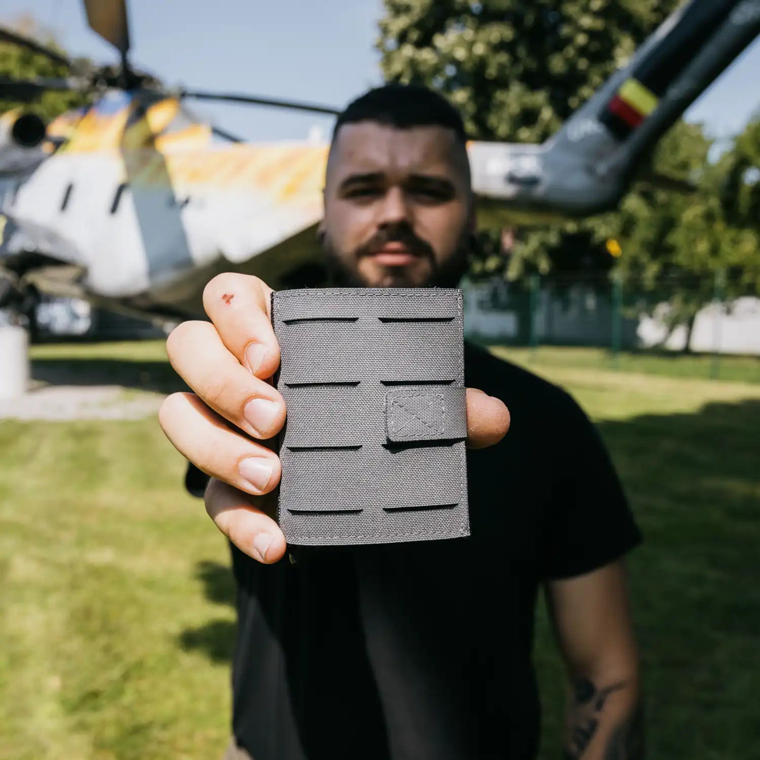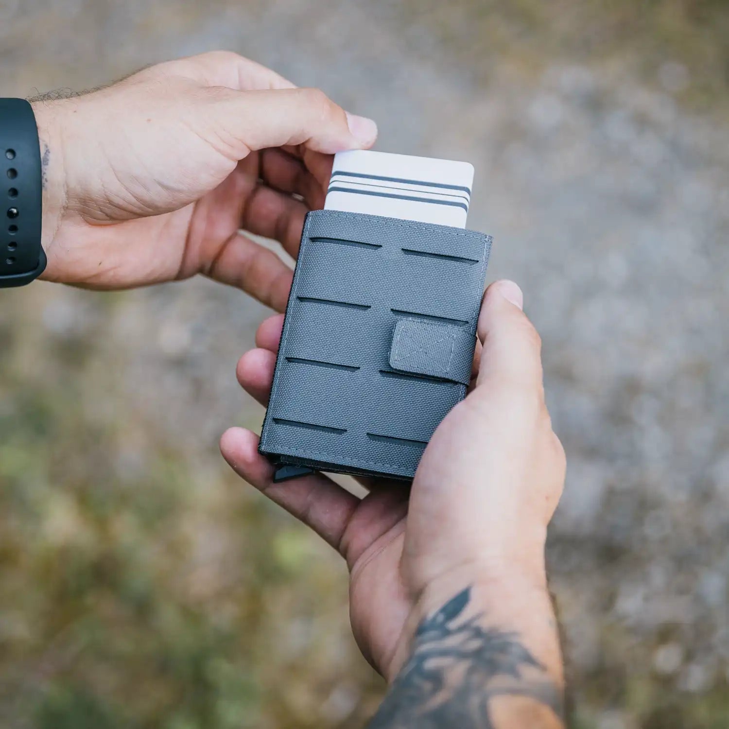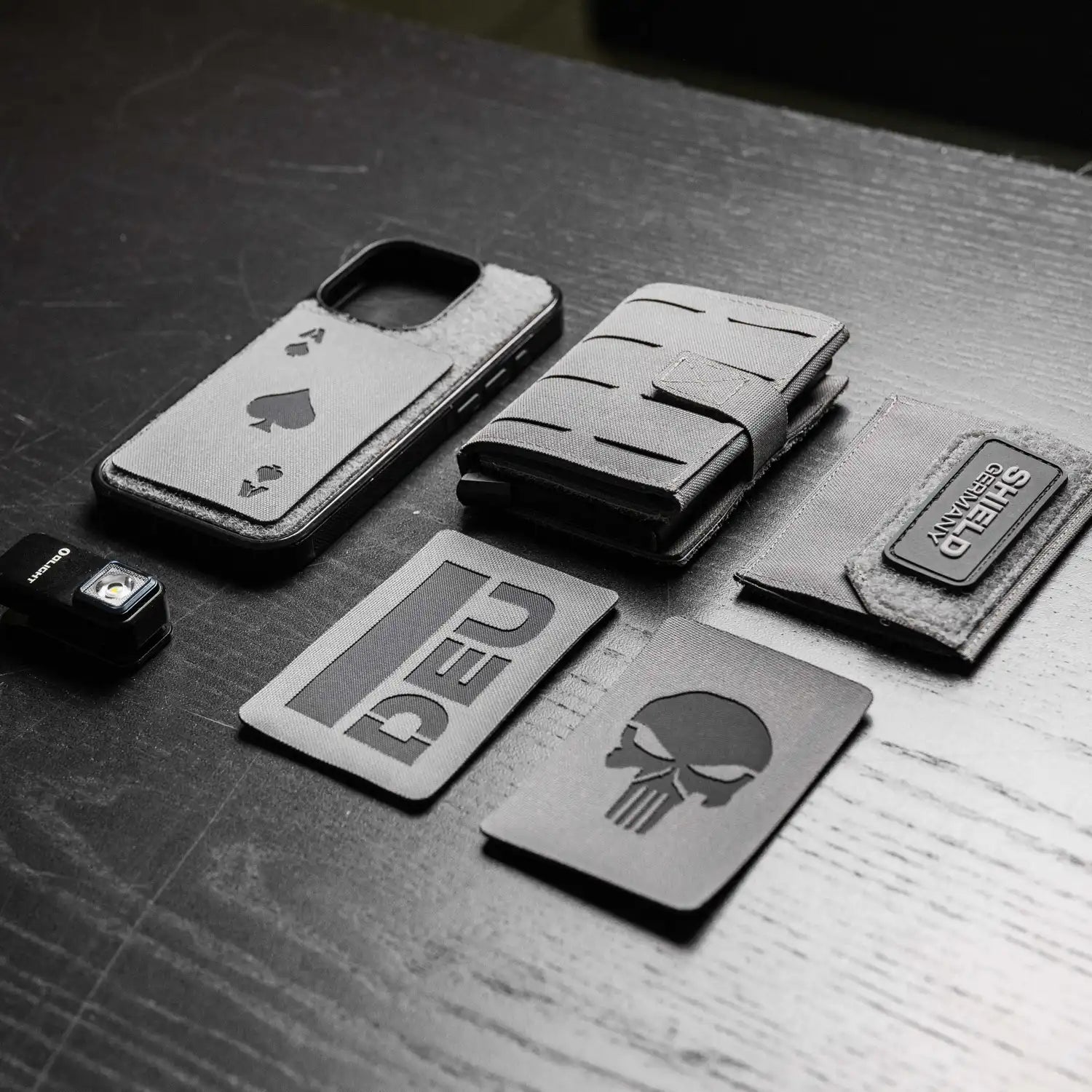 Der neue Aluminium-Kartenhalter ist per Klett sicher integrierbar und kann bei Bedarf auch separat genutzt werden, z. B. auf dem SHIELD Tactical Phone Case. Im Wallet selbst finden 6 Karten und Scheingeld Platz – ideal für jede Lage. Das neue PALS-Design mit trapezförmigen Laser-Cuts sorgt für einen modernen, kantigen Look.